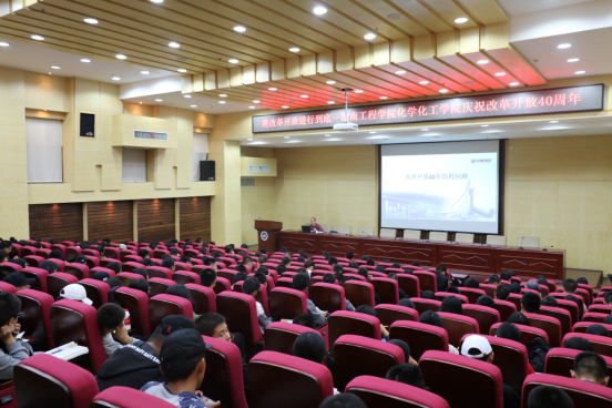 为庆祝改革开放40周年,化学化工学院于10月16日在图书馆二报告厅组织召开了“将改革进行到底”主题宣讲会。本次宣讲会,由化学化工学院党总支书记胡爱钦主讲。化学化工学院200余名学生到场,聆听了本次宣讲会。