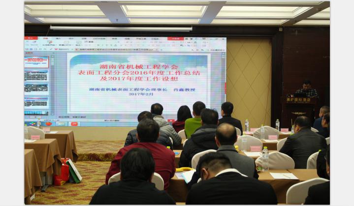 会议由湖南工程学院化学化工学院、学会副秘书长易翔高级实验师主持,湘潭科立智能装备有限公司袁建新总经理致欢迎辞,湖南省机械工程学会副秘书长刘锦文讲话,对学会工作作了充分肯定,并对学会工作提出了建议;会议分两阶段进行,第一阶段:学会工作报告:湖南工程学院化学化工学院教授、表面工程分会理事长肖鑫代表学会作了学会工作报告,对2016年度的工作进行了全面总结,并提出2017年学会工作设想。