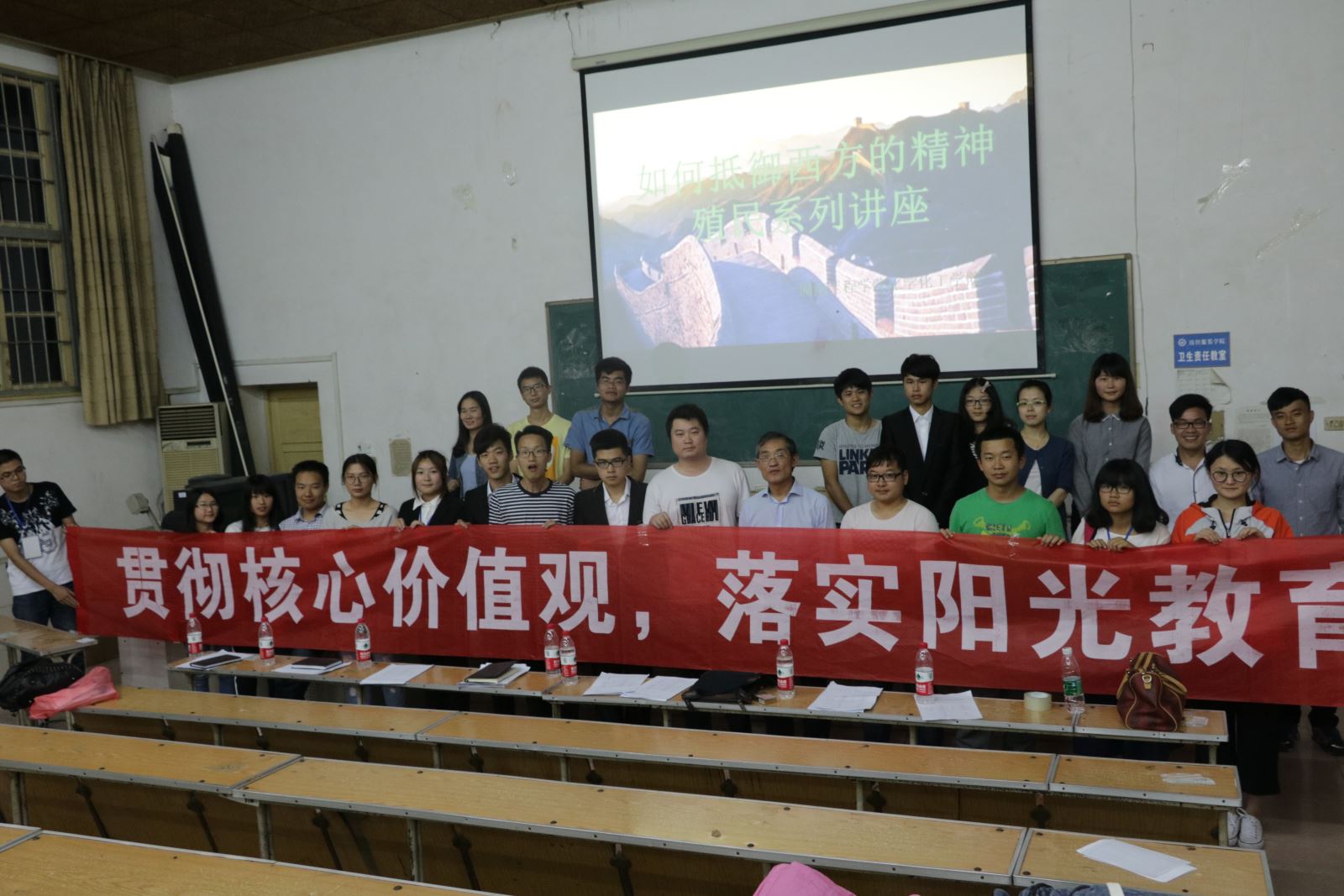 在当今西方话语权占着绝对领导权的情况下,如何防止被西方媒体渗透和忽悠,建立中华民族和中国文化的自尊心和自信心就显得尤为重要。5月16日晚7点30,我院于电教105举行了如何抵制西方精神殖民文化的讲座。党总支副书记张建国,学办老师李芳郴、刘思博、易苏出席。