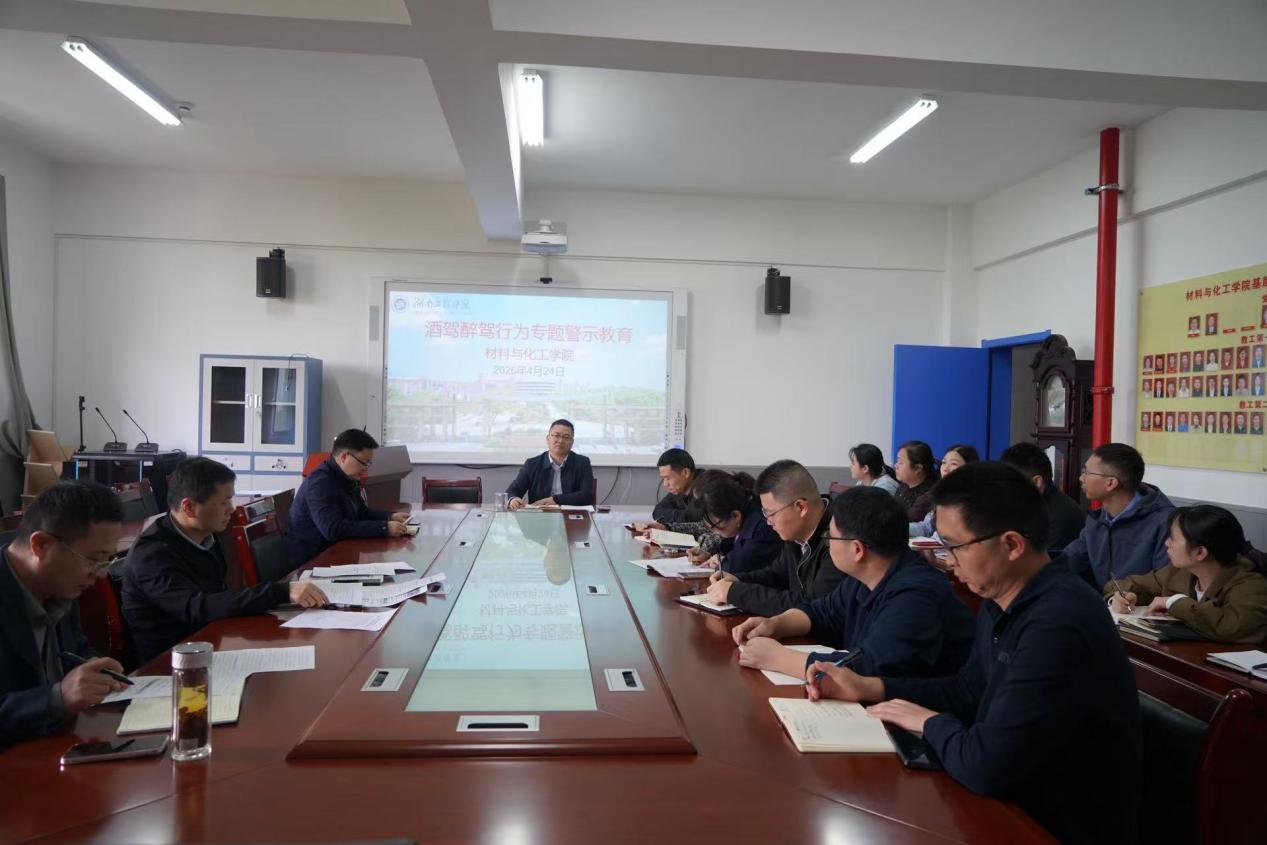 4月24日,材料与化工学院在材化楼304召开酒驾醉驾专题警示教育会。学院党委班子成员、综合办公室、各教研室负责人及学办全体辅导员参会,会议由学院党委书记徐粤宇主持。