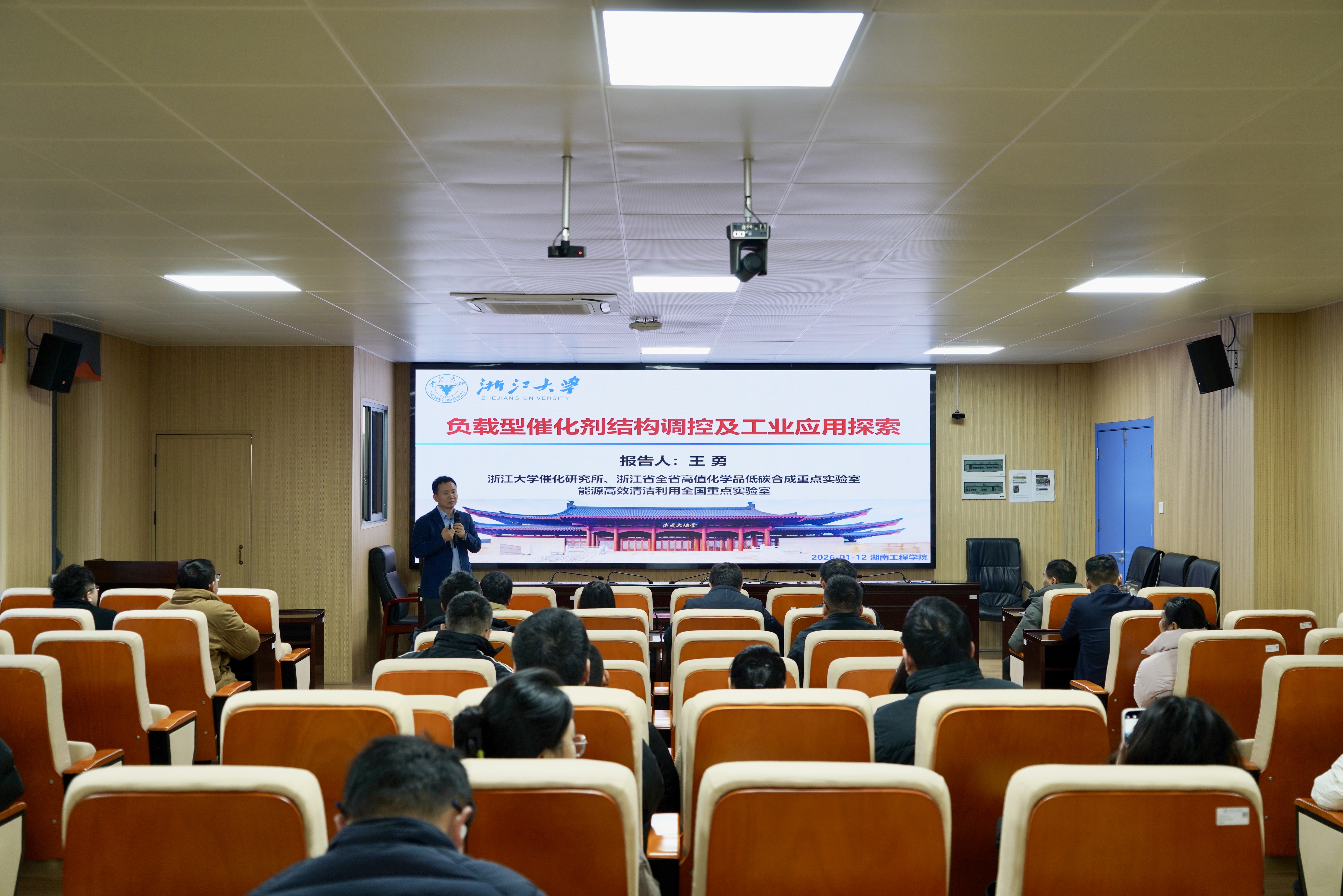 1月12日,浙江大学王勇教授应邀来我校交流指导,为学校师生作了题为《负载型催化剂结构调控及工业应用探索》的精彩学术报告。讲座吸引了材料与化工学院的众多师生参加。材料与化工学院院长黄先威主持本次讲座。