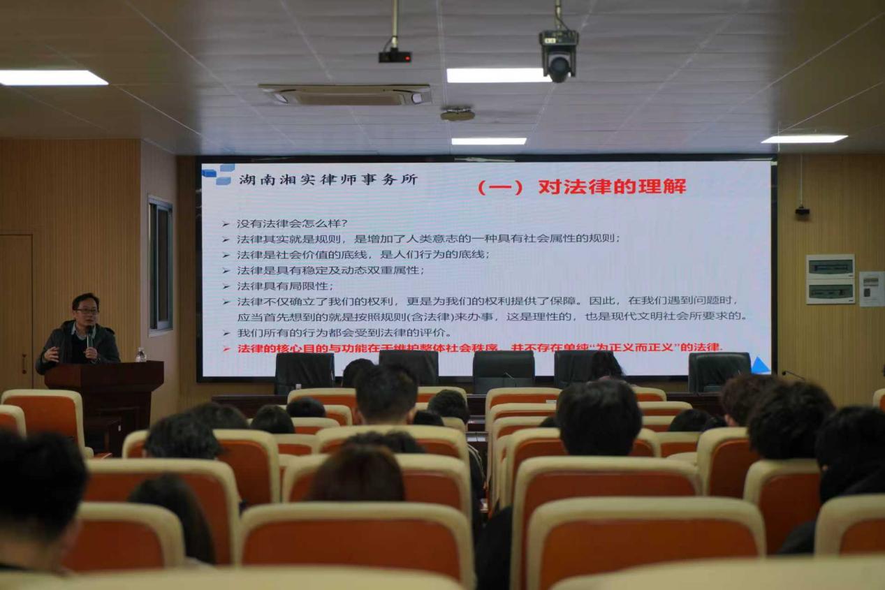 12月9日下午,材料与化工学院在材化楼A301开展普法专题讲座。湖南湘实律师事务所律师杨钢担任主讲,学院党委副书记陶连洲及师生代表参与。陶连洲主持活动。