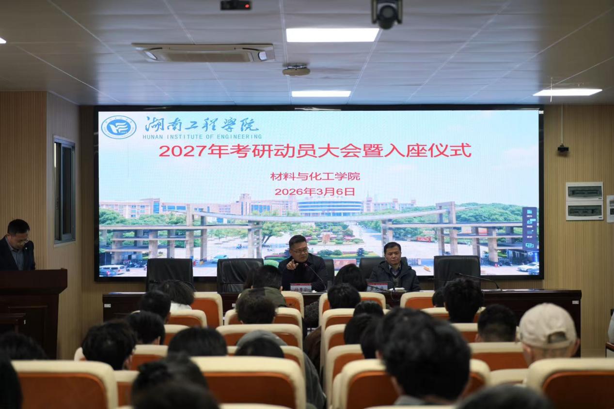 为帮助考研学子明晰考研方向,坚定备考信心,3月6日下午,材料与化工学院在材化楼301举行2027年考研动员大会暨入座仪式,院长黄先威、党委书记徐粤宇、副书记陶连洲、辅导员代表及2022级学生代表参会。会议由陶连洲主持。