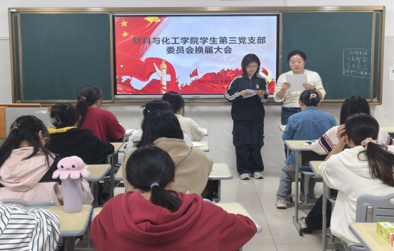 随后,大会依次表决通过选举办法、新一届支部委员会委员候选人名单及监票人、计票人名单。在充分发扬民主基础上,与会党员以无记名投票方式差额选举产生新一届支委会委员。选举过程组织严密、程序规范、公开透明,结果充分体现全体党员意愿:唐欢、李苏扬、王婧当选学生第一党支部委员;王祥若、杨博文、王懿当选学生第二党支部委员;黄玲、胡怡轩、杨鑫当选学生第三党支部委员。